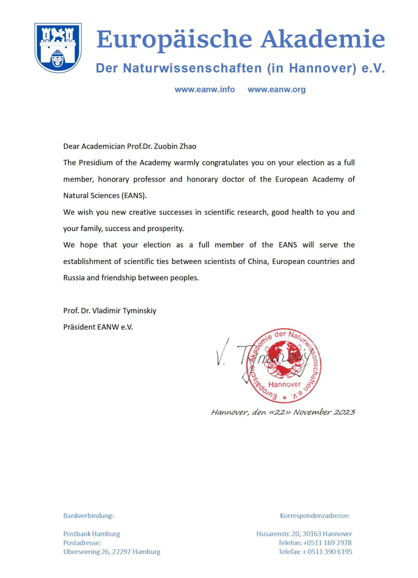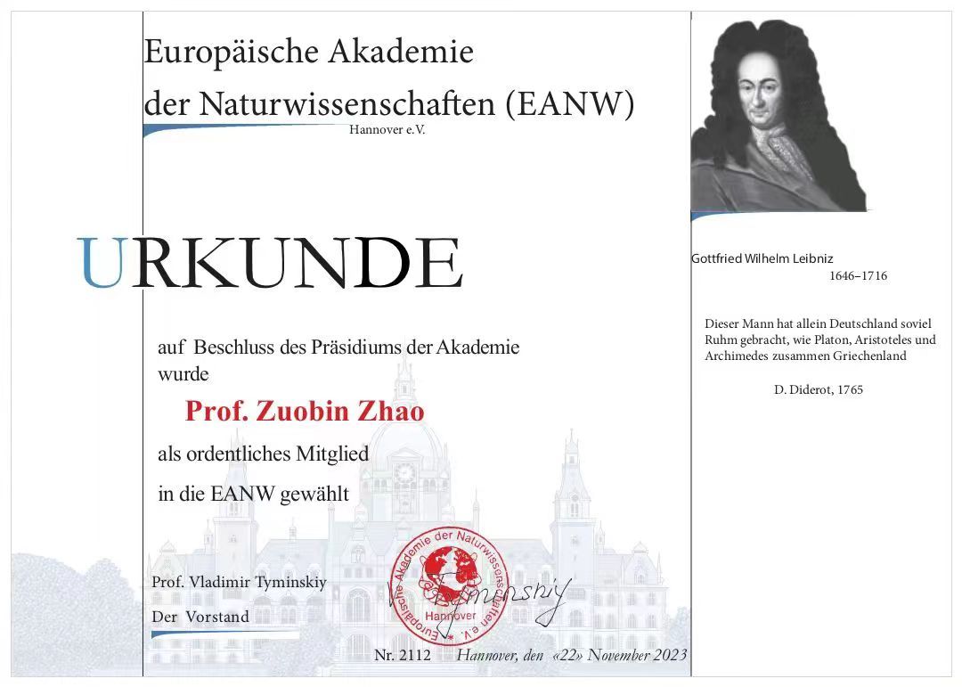 武昌理工學院校長趙作斌教授當選歐洲自然科學院管理與經濟學部外籍院士