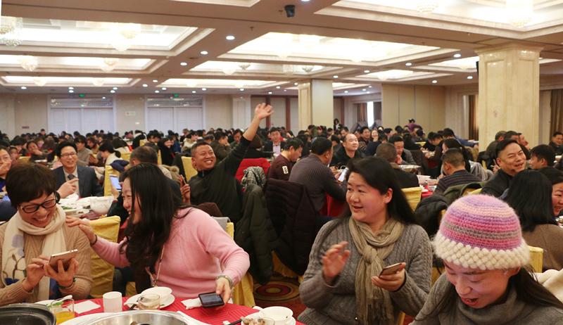 新春團年宴在歡快、喜慶、祥和的氛圍中有序進行,除了豐盛的美食,還有豐富多彩的才藝展示烘托節日氣氛,而一輪輪的“搶紅包大戰”更是在現場掀起了一陣又一陣高潮。