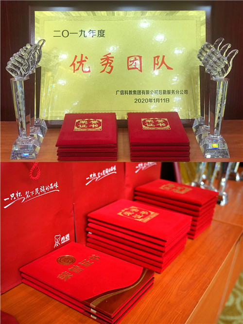 飲食部經理黃向陽、資產部主管趙曉艷、水電部經理朱道剛、梅園廚師長周會平、學生滿意檔口梅園拉面張艷輝、學生滿意商鋪天貓小店周慶華分別作了獲獎感言,介紹經驗、傳遞企業正能量。他們表示,能獲得獎勵是對自己的一種激勵,新的一年里將積極努力,以更加飽滿的工作熱情投入到工作中,為廣信后勤服務分公司的發展貢獻自己的力量,相信公司在2020年一定會取得更好的成績。大會號召全體員工以他們為榜樣,學習他們在各自崗位上盡職盡責、任勞任怨的團隊精神,希望所有員工在新的一年里再接再厲,再創佳績,F場全體員工用熱烈的掌聲向他們表示祝賀。