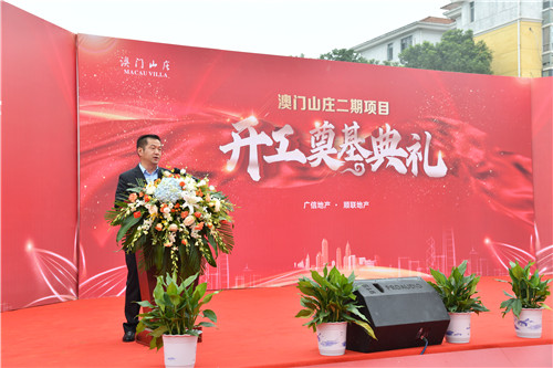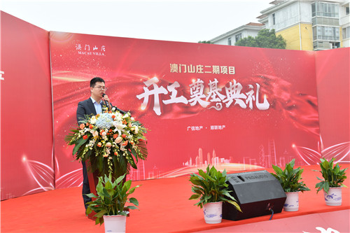 樁深新業起,基實宏圖展。2020年9月26日,由廣信地產和順聯地產投資建設的澳門山莊二期項目開工奠基典禮隆重舉行。廣信科教集團董事局副主席、副總裁呂驊燕,江夏經濟開發區管委會主任劉仕斌,項目總承包單位民族建設集團有限公司副總裁葉杰出席奠基典禮并發表重要講話。