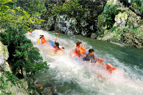 老少皆宜【鴛鴦溪漂流】(體驗時間約2小時左右):發源于大洪山主峰寶珠峰腳下的白龍池,全長6.7公里,河流蜿蜒曲折,沿途山高嶺峻,峽險谷幽、水碧林翠、鳥語花香,素有“九曲鴛鴦溪,十里水畫廊”之稱,為鄂中地區唯一親情浪漫漂的旅游勝景,是全國最具人氣的漂流首選地。在這里可以剛柔并濟,疾緩相間,既能與激流相搏,也能在碧水蕩舟,品味山水閑情的浪漫情調。