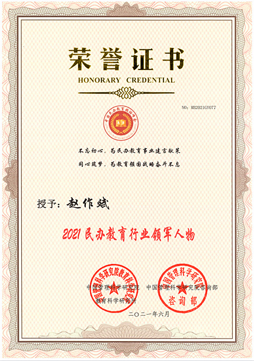 榮譽 | 廣信科教集團董事局主席、總裁趙作斌被授予“2021民辦教育行業領軍人物”