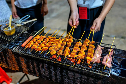 我們在山上燃起燒烤爐,串上食物動手,來一場爽快的燒烤盛會。滾燙的美食搭配著清爽的可樂或啤酒,涼涼的山風向我們迎來,你一言我一語的聊著天,好像在這廣闊的天地之間只剩下歡樂。
