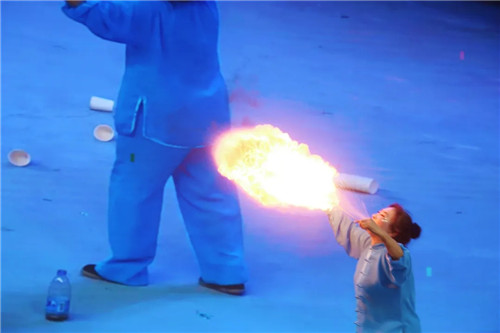 川劇變臉、雜技噴火,表演者配合音樂,用戲曲的身段和絕妙的技巧在舞臺上一次次瞬間變換臉譜、噴出焰火,給觀眾一次又一次的驚喜。