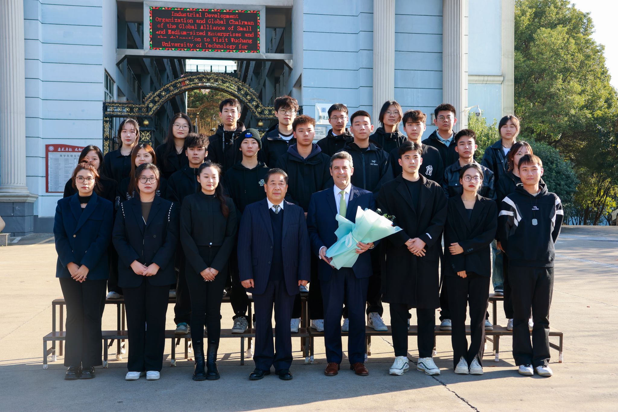7日下午,在武昌理工學院校長趙作斌教授等陪同下,卡洛斯先生一行參觀了該校校園、圖書館等地,并與該校工商管理精英班、青年領袖班學生合影留念?逅瓜壬硎荆“非常高興能來到武昌理工學院參觀交流,美麗的校園、完善的設施,給我留下了十分深刻的印象。漫步在校園中,就像是在一幅美麗的畫卷中漫步,讓我感到無比的舒適和愉悅。”