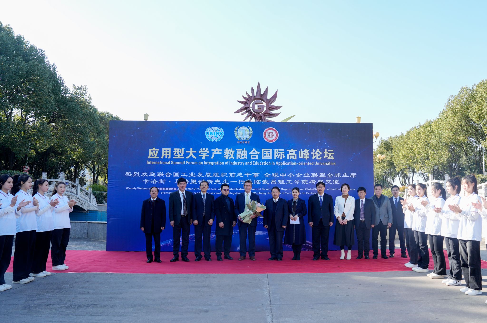 12月7日,聯合國工業發展組織前總干事、全球中小企業聯盟全球主席卡洛斯·馬格里諾斯先生一行來到武昌理工學院考察交流,并出席了“應用型大學產教融合國際高峰論壇”。在“應用型大學產教融合國際高峰論壇”上,卡洛斯先生受聘為武昌理工學院榮譽教授和校企合作國際大使。他還欣然題詞:武昌理工學院產學研協同育人,是一所高水平應用型大學。