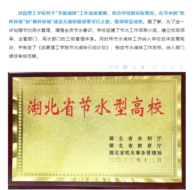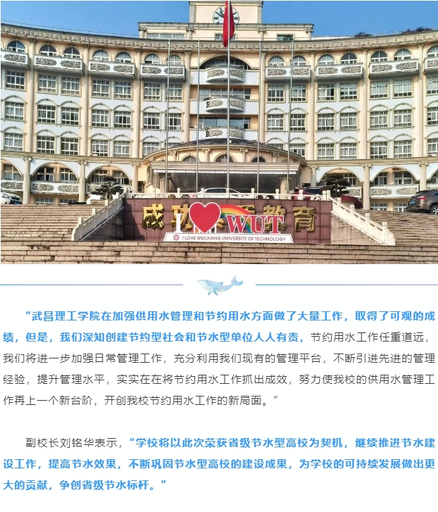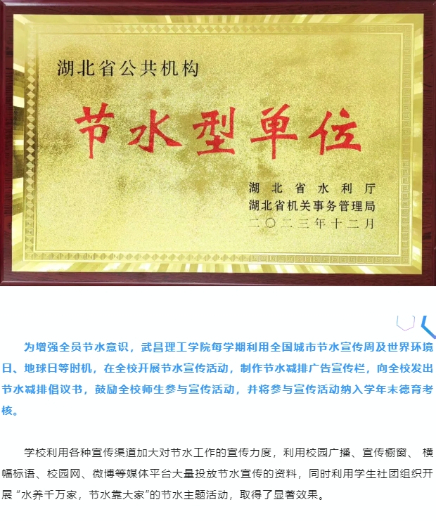頭條 | 武昌理工學院喜獲“湖北省節水型高!薄肮澦蛦挝弧彪p重榮譽稱號