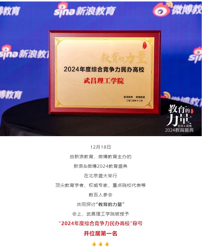 頭條 | 祝賀!武昌理工學院獲評2024年度中國標桿型民辦高校!