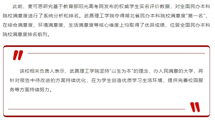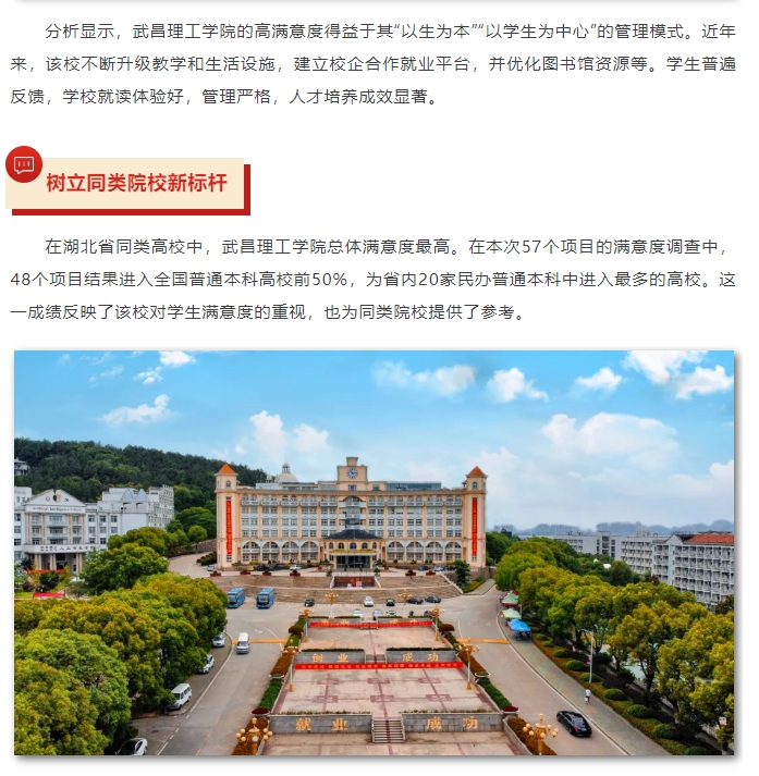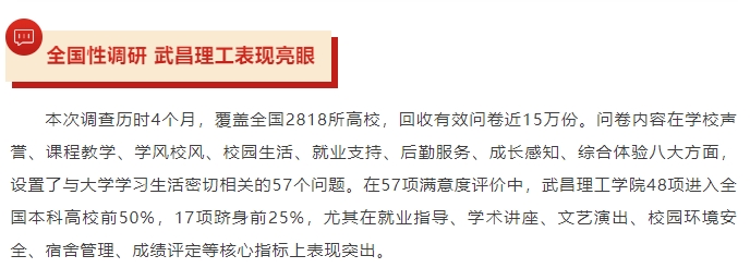 頭條|滿意度調查!武昌理工再次位居省內同類高校榜首!