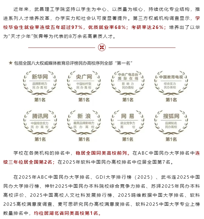 頭條|滿意度調查!武昌理工再次位居省內同類高校榜首!